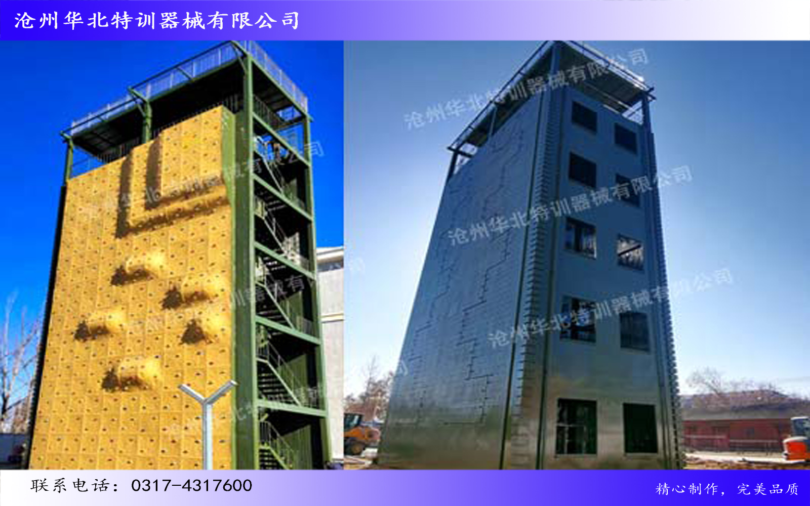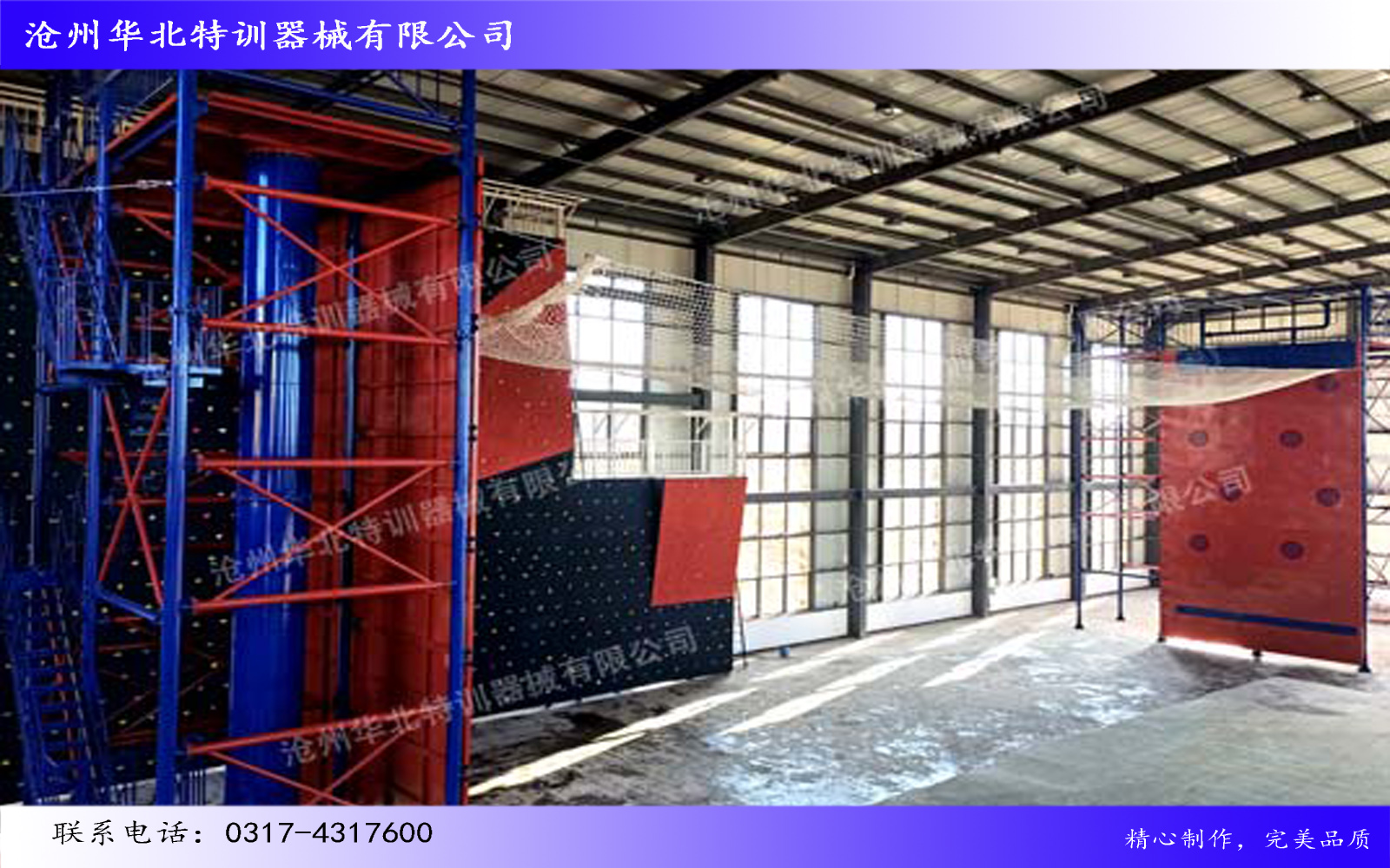 江蘇淮安某部攀登樓附屬設施順利完工!此項目主要包含攀巖墻、雨水管、避雷針、攀爬鋼梯及索降平臺...