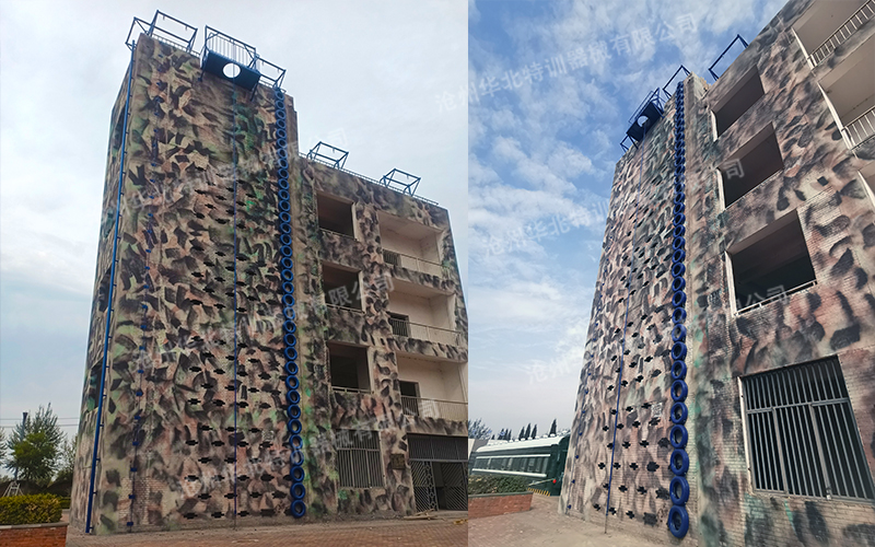 山西警察學院攀登樓附屬設施順利完工!此項目主要包含雨水管、避雷針、索降爬繩、輪胎攀爬、軟...