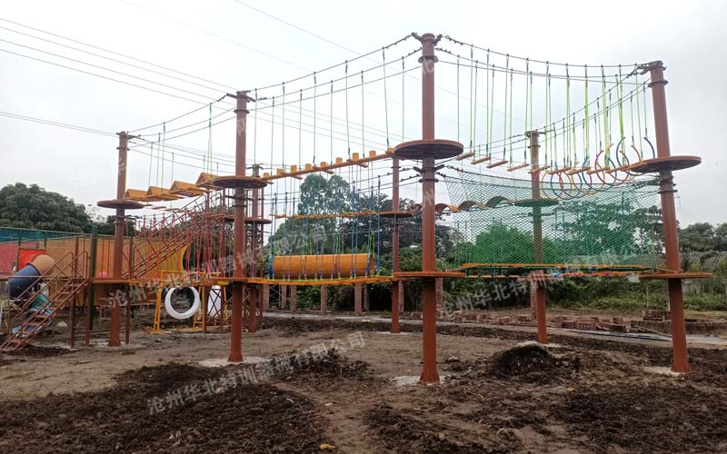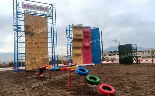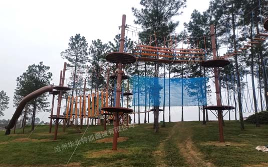 此拓展基地由華北特訓設計、生產、施工安裝。現已建設完成并投入使用。此拓展基地主要建設有叢林探...