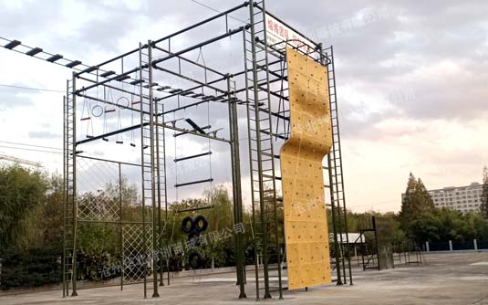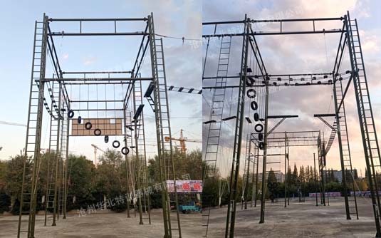 高空組合訓練器械單項具有單杠、斷橋、天梯、吊索橋等幾十種,項目可根據客戶需求及場地情況設計成不同的組合造型,結構也可由單立柱調整成組合柱。