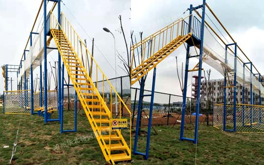 包含項目:獨木橋、翹板橋、橫渡天梯、吊索橋、斷橋、攜手并進、相互依存、禮讓通行、網墻(2組)十個項目。兩側有斜樓梯上下。