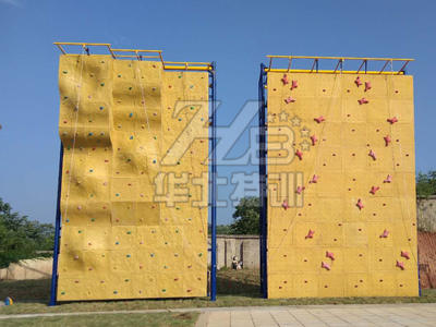 抱石攀巖墻的組成是由巖壁支撐架、攀巖墻面和攀巖支點組成的,巖壁支架是攀巖墻的主體結構,分為獨立結構和有支撐結構,選取硬度較高的鋼材質結構組成,攀巖墻面一般由玻璃鋼或木質攀巖板制成,攀巖支點是攀巖墻的重要配件,它所采用的材料和建造工藝都和抱石攀巖板如出一轍,它的形狀各異,有仿真的,也有卡通的,由不銹鋼螺栓固定在巖板上。 ...