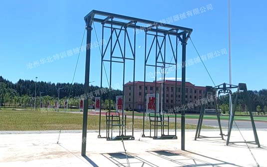 高空反恐綜合訓練架器械常規項目間距6米,總高9米。主要項目包含:單杠、斷橋、天梯、吊索橋等幾十多種單項。可根據場地大小和訓練需求選定項目進行定制。 ...