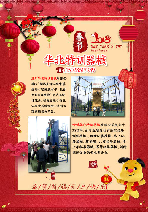 滄州華北特訓器械有限公司至今已經成立16周年,感謝新老客戶的大力支持,在此新年之際祝新老客戶新年快樂,狗年大吉,萬事如意,財源滾滾。