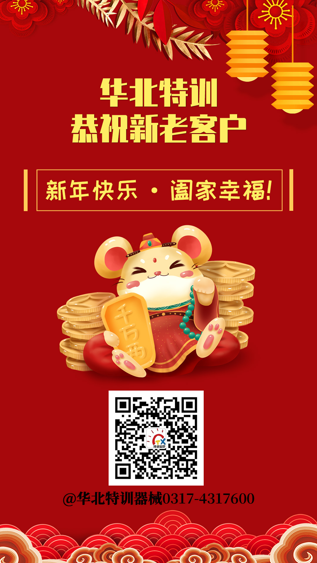 時光匆匆,隨著2020年新年鐘聲的慢慢臨近,春節也將如期而至。華北特訓在此感謝大家過去一年對我司的支持與信任,同時也希望在新的一年里,我們能繼續得到大家的關注與支持,并且也會一如既往地為大家提供更優質的服務。在此向各位新老客戶和廣大朋友們拜個早年!預祝大家新春愉快!財源廣進!事業紅火!
