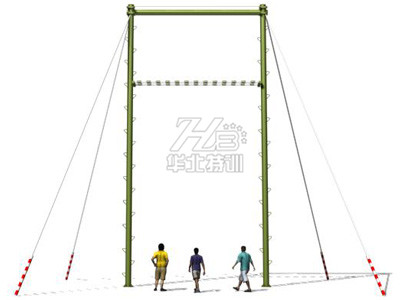 有主保護人員檢查保護系統,確認沒有問題后,受訓人員由立柱攀爬至梅花橋處,從一端走至另一端。利用立柱安全返回地面