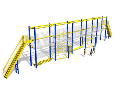 整體尺寸:占地43.5米長×9米寬。器械尺寸42.8米長×0.9米寬×8米高,平臺高度5.5米。由六組立柱和十個中間項目組成,立柱間距6米。