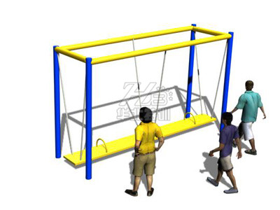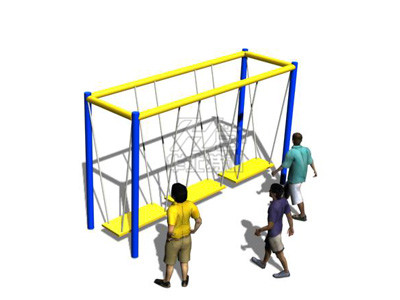 參訓人員站在晃板的一端借助兩邊的吊繩,保持身體平衡走至另一端