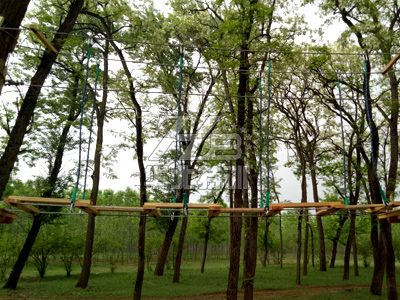 叢林探險是通過在樹木與樹木之間搭建各種不同風格,難易程度不同,超強刺激的拓展項目,利用專業的安全裝備體驗高空穿行,感受樹上攀爬與林間穿越的刺激,能有效的提高參與者的勇氣和自信心。可以使得體驗者體會到不同于普通地面環境下的穿越感受。