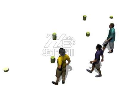 在長(zhǎng)7米、寬2.5米范圍內(nèi),設(shè)置5-7根0.1-0.4米高低不等的梅花樁,木樁間隔1.5米