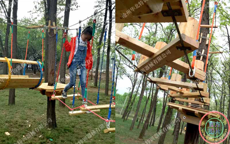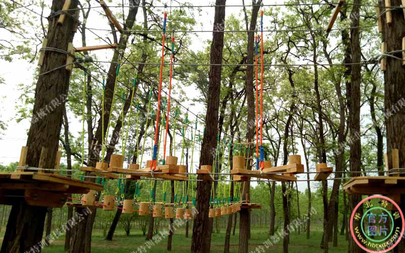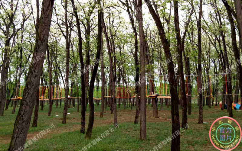 要求場地有大的樹木,樹木直徑要求大于20厘米以上,高度要求在6米以上,因為要在樹木上安裝站立平臺和架設項目,要求樹木能夠承受足夠的拉力。如果樹木過細高度不夠,就需要架設仿真樹木或鋼構的立柱來替代樹木。
