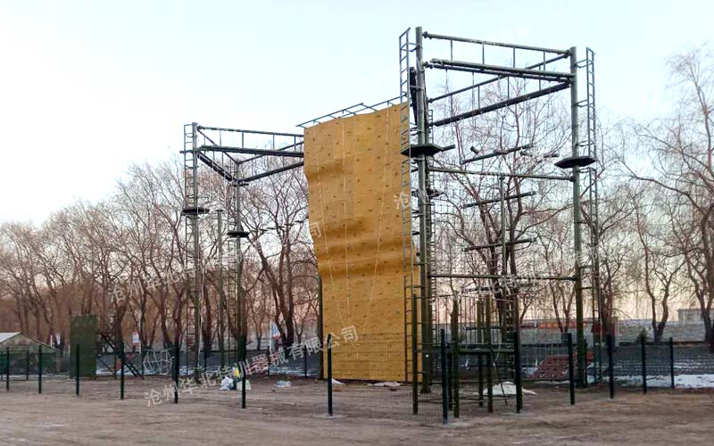 遼寧省鞍山市海城市某部隊軍事拓展基地主要建有定制型高空組合器械一套,豪華版四米墻和定制版雙人背摔。現已建設完成并投入使用。