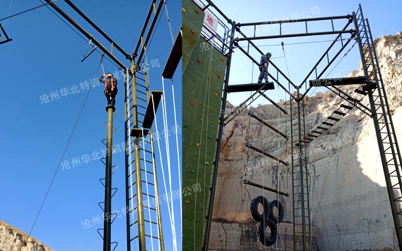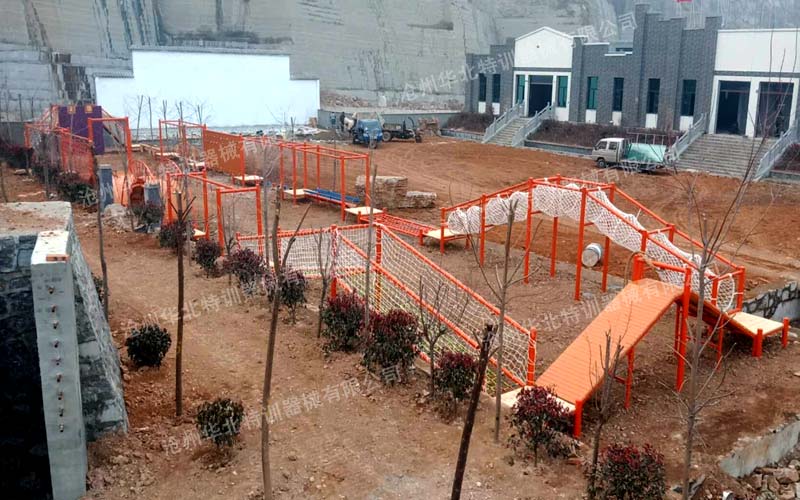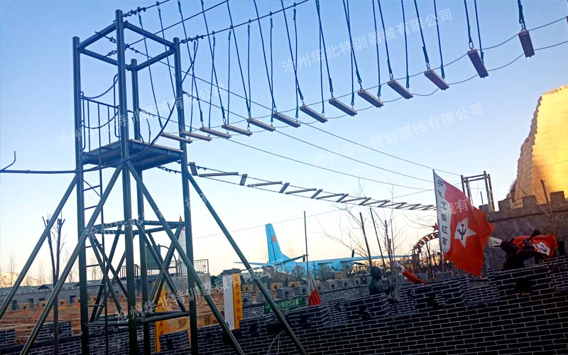 濟寧嘉祥富山國防教基地為豐富國防教育功能,在我公司(華北特訓)定制高空組合器械一套,空中穿越項目一套,青少年素質拓展器械--重走長征路一套現已建設完成,并投入使用。