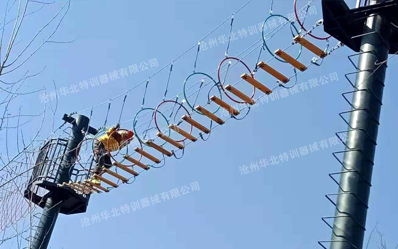 秦皇島北戴河空中穿越拓展訓(xùn)練基地主要建有十個(gè)拓展訓(xùn)練項(xiàng)目和一個(gè)高空滑索,項(xiàng)目間距20米,整體高度高達(dá)12米,體驗(yàn)的難度系數(shù)和建設(shè)難度都非常大,建議沒(méi)有相關(guān)經(jīng)驗(yàn)的廠家不要去嘗試。