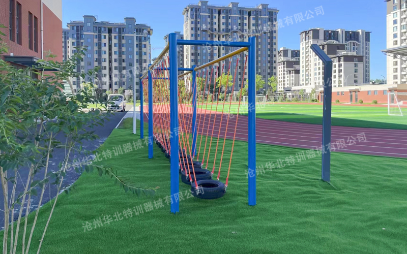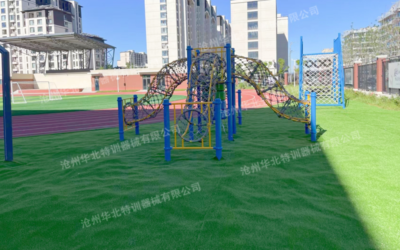 此拓展基地主要包含主要包含:輪胎碰碰橋、爬網、四角鉆籠。現已建設完成并投入使用。