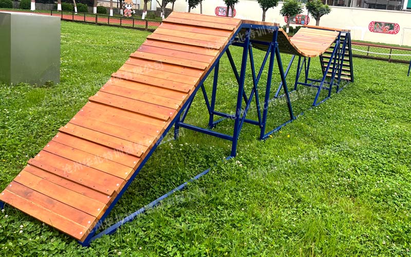 搜救犬敏捷性障礙訓(xùn)練是為提升犬只身體素質(zhì),增強(qiáng)在救援現(xiàn)場(chǎng)通過各種障礙物的能力。是根據(jù)地震現(xiàn)場(chǎng)的不穩(wěn)定性結(jié)構(gòu)去搭設(shè)的,要求搜救犬能夠根據(jù)訓(xùn)導(dǎo)員指令慢速通過。不同的場(chǎng)景也對(duì)應(yīng)了地震廢墟的不同現(xiàn)場(chǎng),所以通過在綜合訓(xùn)練場(chǎng)訓(xùn)練,一方面能夠提高搜救犬通過障礙的獨(dú)立性、作業(yè)的連續(xù)性,同時(shí)也能提高搜救犬的心理素質(zhì)、連續(xù)作業(yè)時(shí)間,來幫助它們更好地適應(yīng)地震災(zāi)害現(xiàn)場(chǎng)的環(huán)境,提高搜索救援的能力。