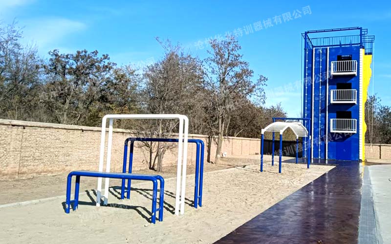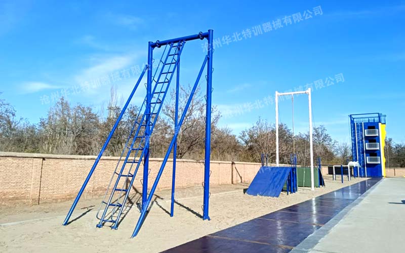 公安特警八項障礙場具體包括:低樁網、2.4米高板、空中軟網、高架速降、斜板蕩繩、愛爾蘭高板、高欄、弧形肋木。常規器械為雙道設計,也可根據場地情況,和日常訓練需求定制為單道,華北特訓是二十多年的專業生產廠家,支持個性化定制