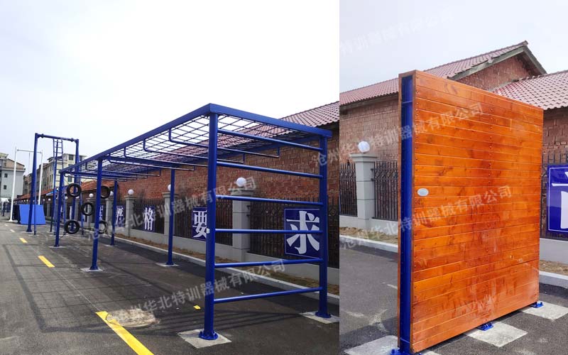 公安特警八項障礙訓練場具體包括:低樁網、2.4米高板、空中軟網、高架速降、斜板蕩繩、愛爾蘭高板、高欄、弧形肋木。常規器械為雙道設計,也可根據場地情況,和日常訓練需求定制為單道,華北特訓是二十多年的專業生產廠家,支持個性化定制。