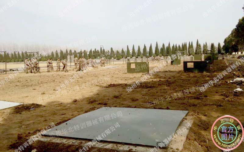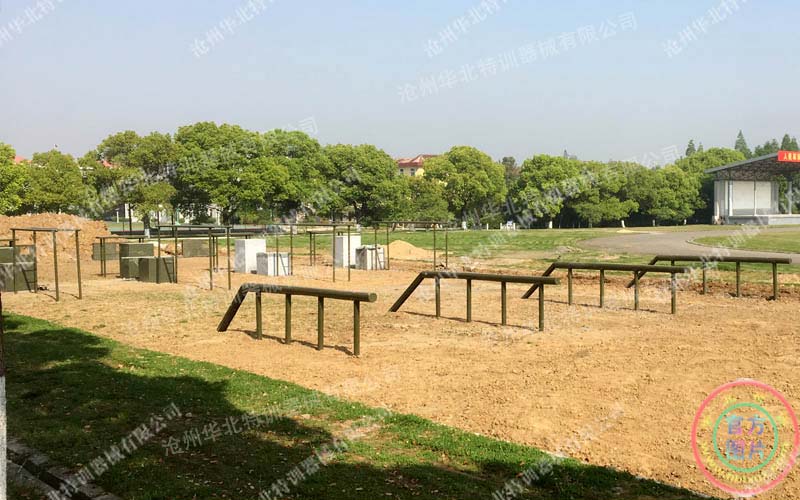場地不足100米長時,根據具體場地實際情況可選擇雙道回折式排列,具體障礙器械位置亦根據實際情況確定,通常做法為取場地為50米長,寬6米。