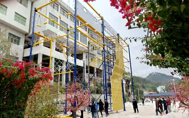 貴州省平塘縣研學拓展培訓基地主要建有高空拓展器械一套,現已建設完成并投入使用。