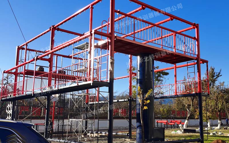 此訓練場主要包含繩索救援訓練架,消防200米滅火障礙。