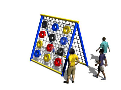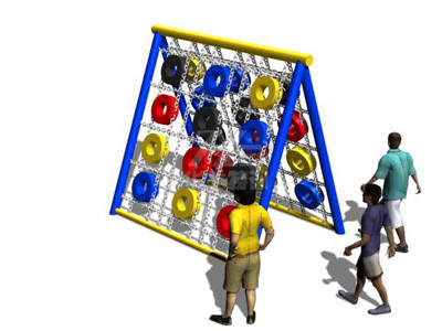 從器械一面通過攀爬輪胎,翻越制高點由另一面攀下至地面。