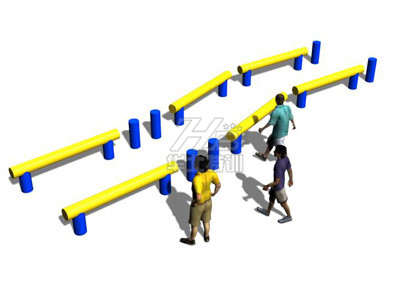 人員從獨木橋的一端,在不借助任何物體的情況下慢慢通過。