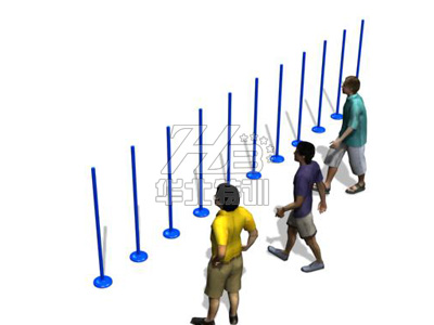 底座長6.12米,用J40×60矩形管焊接,立桿用φ27鋼管制成,高度1.5米,插在底座上。每套11根,間隔0.6米直線排列。