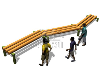 在長10米,寬2米的范圍內,設置3組6對鐵架。每對鐵架間距2.7米,寬1米,每對鐵架上放3根圓木