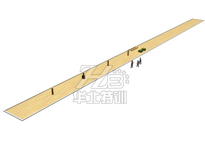 長100米,起始端設(shè)4跟立柱,直徑0.3米,高1.5米,間距10米,其由一個立柱由5個輪胎。中部設(shè)彈藥箱和圓木(可供單人或小組使用,重量和長度不等)若干。